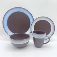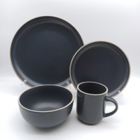Bán buôn New Matte đôi màu men đen rim men gốm đặt bữa ăn tối sứ Bộ đồ ăn đặt